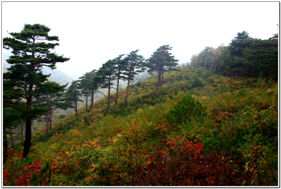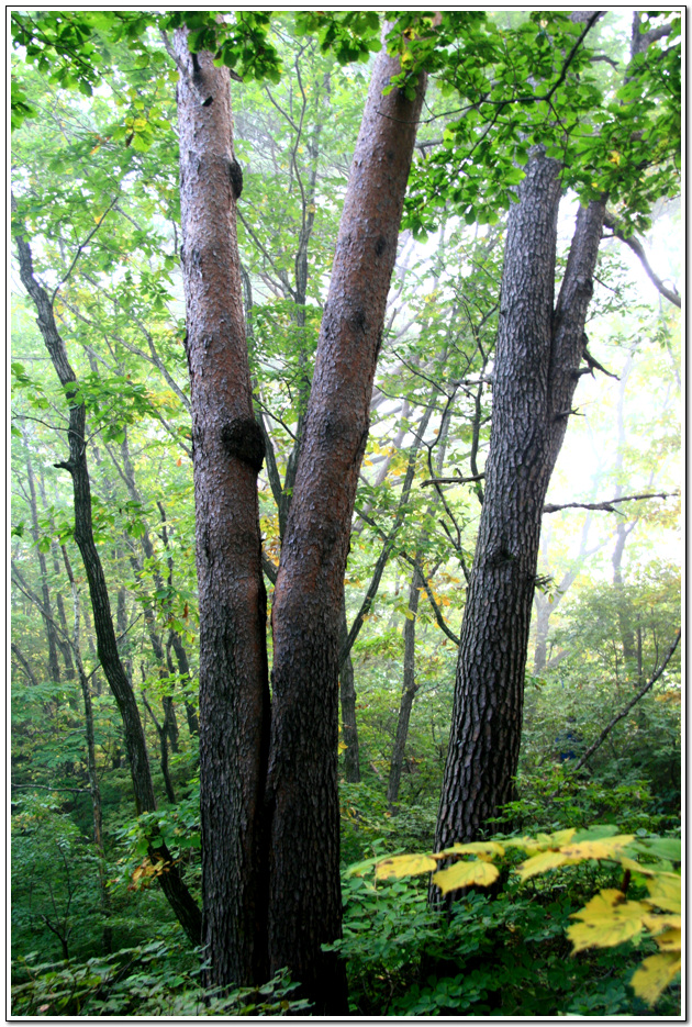 단풍으로 갈아입는 잡목들 중간에 듬성듬성 남겨진 소나무의 자태가 더욱 도드라진다.