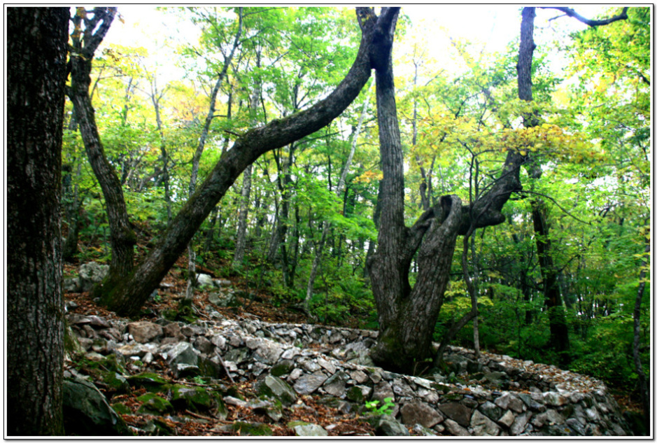 빗물에 산길이 파이지 않도록 수로 하나도 신경쓰고, 아래 사진처럼 멋지게 나무를 보호하는 돌담을 쌓아 놓기도 했다.